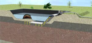• Zber povrchovej vody nad geomembránovou vrstvou