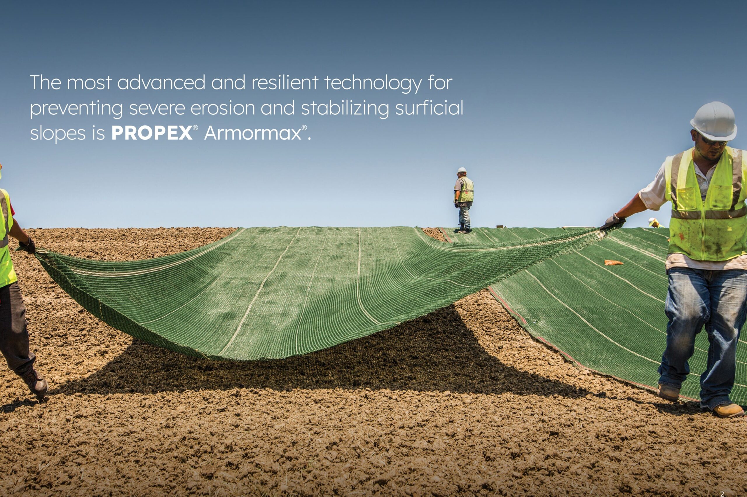 Systémy na kontrolu erózie a stabilizáciu povrchov PROPEX® ponúkajú inovatívne riešenia, ktoré sú udržateľnejšie a nákladovo efektívnejšie než tradičné materiály na ochranu proti erózii. Naše riešenia založené na prírodných materiáloch stabilizujú a chránia pred hydraulickým stresom, čím poskytujú väčšiu odolnosť pre hrádze, priehrady, kanály, pobrežia a ďalšiu kľúčovú infraštruktúru.